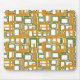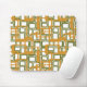 Ce tapis de souris a une conception moderne du milieu du siècle de rectangles ouverts en or sur des rectangles ouverts en vert.