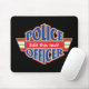 Cadeau de policier avec le secteur fait sur commande des textes que vous pouvez éditer pour vous ajouter nommés, le nom de département ou le nombre ! Texte de policier dans des couleurs rouges, blanches, bleues et jaunes avec l'arrière - plan assorti de barre ! le centre de la conception est un rectangle rouge que vous pouvez éditer le texte ! Créez un cadeau fait sur commande pour votre policier préféré ! grand pour des familles de police, créez une maman de policier, un papa, une conception de fils et un plus !