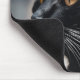 Gros plan d'un chat noir avec portrait de whiskys blancs.