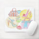 Une illustration pour aquarelle à la mode de deux chaussures de talons hauts entourées par des sacs à main et des fans colorées. Ce mousepad est un cadeau parfait pour votre épouse, amie ou un collègue de votre bureau qui est juste ennuyé des mousepads gris ordinaires.