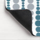 Ce tapis de souris a une conception moderne du milieu du siècle de rectangles arrondis turquoises et gris en taille croissante et décroissante, fonctionnant verticalement sur un champ de blanc.