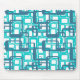 Ce tapis de souris a un design moderne du milieu du siècle de rectangles ouverts en bleu sur rectangles ouverts en bleu rouge oeuf de robin.