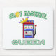 C'est votre nouvelle chemise chanceuse ! Une machine à sous orientée colorée de cerise sauvage avec une couronne de reine sur le dessus et l'expression, "la reine de machine à sous," écrit au-dessus et ci-dessous en de gris d'amusement/d'argent a décrit la police avec une pièce d'or au lieu du "O" sur la fente de mot. Chemise parfaite à porter au casino !