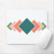 Ce pavé de souris a une conception Bauhaus de sept diamants qui se chevauchent verticalement le long de l'article en couleurs rétro de bleu, rose et vert.