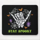 Ce design Halloween branché et bizarre présente une main squelette avec l'expression "Restez Éffrayant". Il est parfait pour les amateurs de gothique et de rock 'n roll pour la saison d'Halloween.