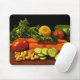 Ce mousepad comporte un plateau en bois exquis des légumes crus frais comprenant des carottes, des tomates, des poivrons, des concombres et le persil. Un citron et les anarcadiers accomplissent la sélection. Cette vie immobile est un beau et sain repas gastronomique aussi bien qu'une composition artistique colorée de rouge, orange, jaune, verdit, bronzage et brun.