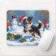 Illustration de vacances pleine de charme avec un chien gai jouant dans la neige, portant un chapeau de Père Noël et entouré de boîtes cadeaux colorées. Dans l'arrière - plan, les enfants construisent un bonhomme de neige à côté d'un sapin de Noël enneigé, créant un merveilleux pays hivernal. Parfait pour répandre la joie des fêtes et capturer la magie de Noël.
