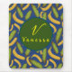 Tapis De Souris Script de monogramme à feuille bleue banane tropic