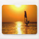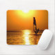 Silhouette d'une planche à voile sur des vagues d'un golfe sur un coucher du soleil