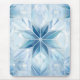 Mouse pad with blue snowflake design.