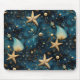 Un tapis de souris avec un élégant motif bleu avec étoiles de mer, représentant l'océan.