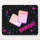Pink Bingo Souris Pad Arrière - plan noir avec cartes de Bingo Pink et étoiles avec petites étoiles bleues. Je ferais un grand cadeau.