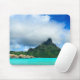 Mousepad avec une station de vacances d'overwater dans la lagune fantastique de turquoise de Bora Bora avec Mt. Otemanu à l'arrière-plan en français la Polynésie française s'approchent du Tahiti. Grande destination pour une lune de miel !