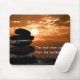 Caire en pierre avec ciel couché de soleil et citation inspirante.