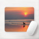 An Irish Setter projette une longue ombre au coucher du soleil sur les rives de l'Irlande.