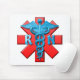 Cadeaux pour des infirmiers autorisés, utilisant un caducée avec les lettres R et N avec un arrière - plan croisé médical rouge.