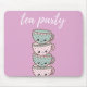 Le mignon pavé de souris rose comporte un slogan "tea party" et de mignonnes tasses illustrées.