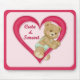 Adorable ours en peluche assis sur un coeur rose profond. Ce petit ours porte un message pour la Saint-Valentin ou toute l'année. Le texte dit mignon et intelligent.