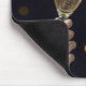Deux verres de champagne, remplis de bulles effervescentes, sont tenus par des mains squelettes sur fond de lumières douces et brillantes