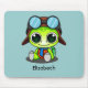 Un dessin animé de chibi mignon. Une petite tortue verte portant une écharpe bleue et un casquette d'aviateur marron avec lunettes. De grands yeux kawaii et un sourire adorable. Personnalisez avec un nom.