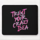 Fuel your creativity with a burst of bold inspiration! This vibrant mousepad features the empowering phrase "Trust Your Crazy Idea" in expressive pink brush lettering on a sleek black background. Perfect for creatives, entrepreneurs, students, or dreamers — anyone who believes big ideas often sound “crazy” before they change the world.