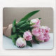 Le pavé de la souris est représenté avec une photo d'une belle tulipe rose. Customisez cet objet ou achetez tel quel. Image stock vecteezy.com
