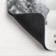 A whimsical snowman stands upside down with boots on its head as snow gently falls, revealing a cozy cabin in the snowy background