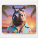 Funny Hippopotamus portant une chemise hawaïenne sur une belle plage.