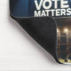 Un grand panneau d'affichage extérieur avec le message "VOTRE VOTE EST IMPORTANT" est éclairé par plusieurs lumières vives, avec un drapeau américain