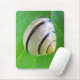 Eine coole weiß-braune Schneckenhaus auf einem grünen Blatt