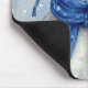 A whimsical watercolor goose wearing a blue hat and scarf, surrounded by softly falling snow, creates an enchanting winter scene.