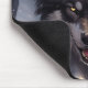 A majestic grey wolf with piercing yellow eyes stands on a thick tree trunk, its powerful paws gripping the bark. The wolf's fur is thick and textured, with a hint of brown around its muzzle. The background features a winter forest. Perfect gift for wolf lovers.