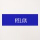 Arrière - plan bleu avec texte blanc. La zone de calme Yoga citation. Personnalisez le nom en majuscules. Utthita Tadasana blanc double cinq étoiles pose des oeuvres d'art à l'intérieur plus profond bleu, noir, blanc motif géométrique au centre. Le relax est écrit sur le dos contre la couleur bleu foncé. Conception de devis d'origine © 2020 TamiraZDesigns.