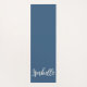Yoga Mat - Design unique avec Bleu pointu / Marine Purple et Ivory / Coeurs blancs et l'écriture "Just Breathe" sur un ivoire clair / arrière - plan beige et votre nom en ivoire sur un arrière - plan bleu assorti