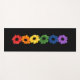 Yoga Mat - Fierté Arc-en-ciel Fleurs / Marguerites en rang sur un arrière - plan noir solide. Design simple et élégant. La couleur noire est parfaite pour cacher toute saleté, et le nom est écrit près du bord, de sorte qu'il sera visible quand le tapis est roulé.