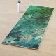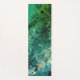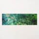 A dynamic abstract composition features an array of swirling shapes and patterns in various shades of green, black, and blue