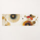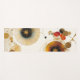 Une composition abstraite, composée de cercles interconnectés et de motifs rayonnants dans les tons or, bleu et rouge, évoquant un thème cosmique ou céleste avec une touche artistique moderne.