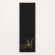 Tapis de yoga noir monogrammed personnalisé avec une police de script blanc et or. Style typographique tendance.