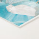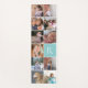 Collage photo moderne et monogramme aqua bleu tapis de yoga. Il dispose de 11 photos de famille et votre original/monogramme sur un bloc de couleur carré vert. Le dos comprend des carrés colorés en plusieurs couleurs. Photographie © Storytree Studios, Stanford, CA