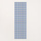 Ce tapis de yoga est orné d'un motif plaid coloré en blanc, bleu et gris-brunâtre (taupe).