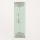 Un design moderne attrayant signature de script personnalisé nom pastel bleu vert tapis de yoga avec symbole d'univers de mandala fleurie, et un script typeface namaste; pour vos étudiants de pratique de yoga ou votre routine d'exercice quotidien! Design moderne et élégant.