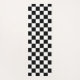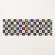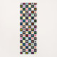 Un tapis de yoga à motifs en damier noir et blanc tendance avec un arc-en-ciel de coeurs colorés d'un côté et noir et blanc uni de l'autre pour cette ambiance de patinage cool rétro avec une torsion girly.