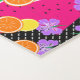 pastèque rouge vert, oranges, citrons jaune vif fruits tropicaux sur un arrière - plan noir et blanc. De belles fleurs d'hibiscus lavande sont disséminées dans les fruits. Une impression estivale amusante. Recherchez la coordination des tirages dans la collection Tropical Watermelon.
