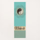 Un tapis inspirant avec un élégant symbole de mosaïque yin yang entouré d'or lumineux fleuri et de petites brindilles feuillues sur un arrière - plan turquoise vert puis sur le fond est un motif de chevron de gloire doré avec un ruban d'or chatoyant où vous pouvez le personnaliser pour le rendre unique à vous. Des vibes élégantes.
