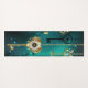 Or, clés antiques avec engrenages et cadrans accrochés sur chaînes dorées sur arrière - plan vert lumineux.