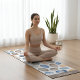 The design features a gentle pattern of organic, pebble-like shapes in soft blue, warm beige, and muted earth tones. The watercolor-style textures create a soothing, balanced look that feels modern yet natural—perfect for yoga, stretching, meditation, or Pilates. The minimalist layout brings a sense of harmony and flow, helping you stay grounded and focused throughout your practice.