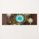Turquoise lenses with antique watch with brass gears and golden keys on rusty, brown background. Steampunk style.