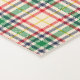 Vertical and horizontal plaid patterns on white backgrounds; the plaid features red, green, and beige stripes, evoking a classic, cozy, and rustic feel.