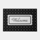 Petit mat de porte à imprimer noir et blanc convivial accueille famille et amis. Habille ton entrée avec ton message personnalisé. Oeuvre originale © Wendy Mikula.