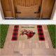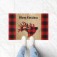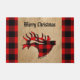 Personnalisez ce chat unique "One of a Kind" Red and Black Plaid Bull Elk Christmas Door Mat! Il est doté d'une silhouette de taureau en rouge et noir sur un Arrière - plan en cuir tan...Entouré de bordures de plaid rouge et noir et des mots festifs...."Joyeux Noël" ! Design D'Art Original Par L'Artiste Kerry Miller !